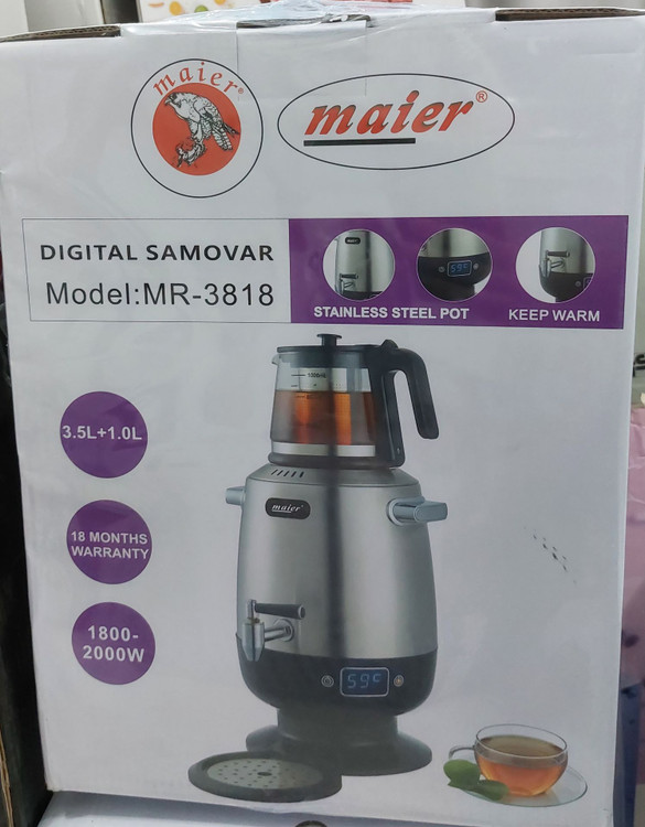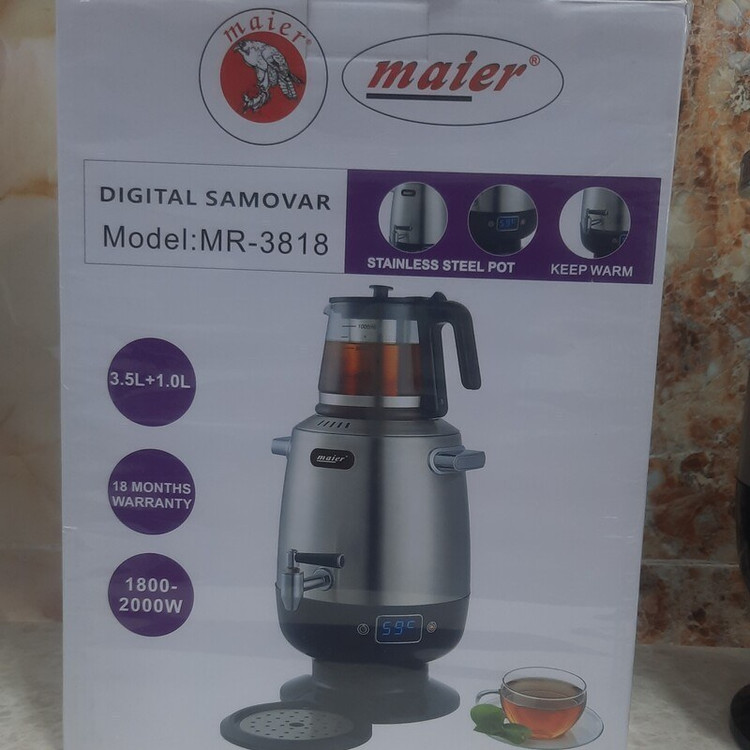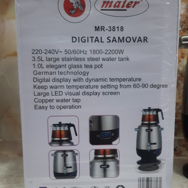 سایر مشخصات: دارای تنظیم صفحه نمایشگر نور ال ای دی با طراحی و کیفیت عالی, - دارای سیستم گرم نگه دارنده دما بین 60 تا 90 درجه سانتیگراد, - دارای صحفه نمایشگر دیجیتال, - سماور برقی دیجیتال جدید تمام حرفهای