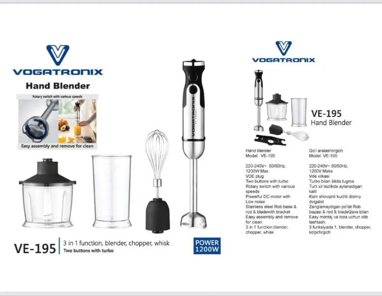 گوشت کوب برقی 3 کاره وگاترونیکس مدل VE-195 از دستگاههای حرفه ای و کاربردی عرضهشده در بازار است. این محصول خوشساخت از نظر زیبایی هم چیزی کم ندارد. محل قرارگیری دست روی آن طوری طراحی شده که بهخوبی در دست جای میگیرد و لغزشی ندارد. دسترسی به دکمههای کنترلی و پیچ تنظیم سرعت، آسان است. تیغههای استیل ضدزنگ طراحی ویژه و دو پره ای دارند تا بهترین عملکرد را داشته باشند.گوشتکوب برقی وگاترونیکس مدل Ve-195 در دوازده سرعت امکان فعالیت دارد تا بهترین نتیجه حاصل شود. با استفاده از سری گوشتکوب، قدرت موتور صرف چرخاندن تیغهها شده و برای لهکردن موادی مانند گوشت، بادمجان و… استفاده میشود.