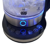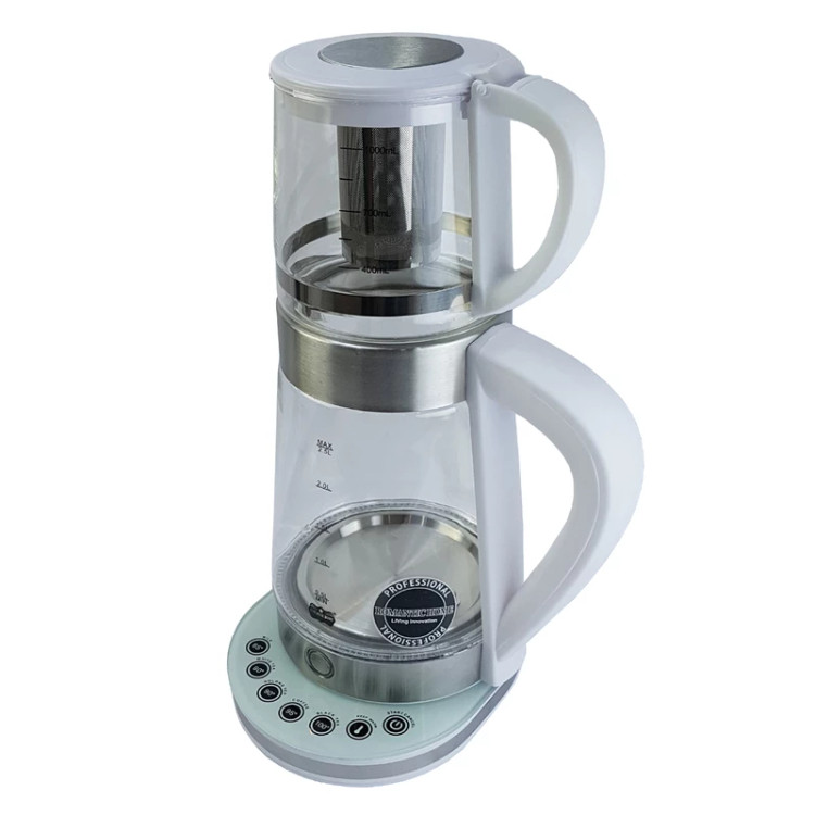 دارای حالت گرم نگهدانده ی آب جهت دم آوری بهتر چای یا دمنوش و همچنین جلوگیری کردن از سیاه و یا کهنه شدن نوشیدنی - صافی جداشونده ی داخل قوری ساخته شده از استیل ضد زنگ - صفحه ی گرم کننده لمسی آن دارای کلیدهای مختلف جهت تنظیم دماهای متفاوت و استفاده ی بهینه از مصرف برق میباشد و کارایی متفاوت به شرح زیر است: • ۶۵ درجه دمای مناسب جهت گرم کردن شیر • ۸۰ درجه دمای مناسب جهت استفاده برای دم آوری چای سفید • ۹۰ درجه دمای مناسب جهت استفاده برای دم آوری انواع دمنوش • ۹۵ درجه دمای مناسب جهت استفاده برای دم آوری انواع قهوه • ۱۰۰درجه دمای مناسب جهت استفاده برای دم آوری چای سیاه • کلید مخصوص حالت گرم نگه دارنده آب • کلید روشن و خاموش دستگاه