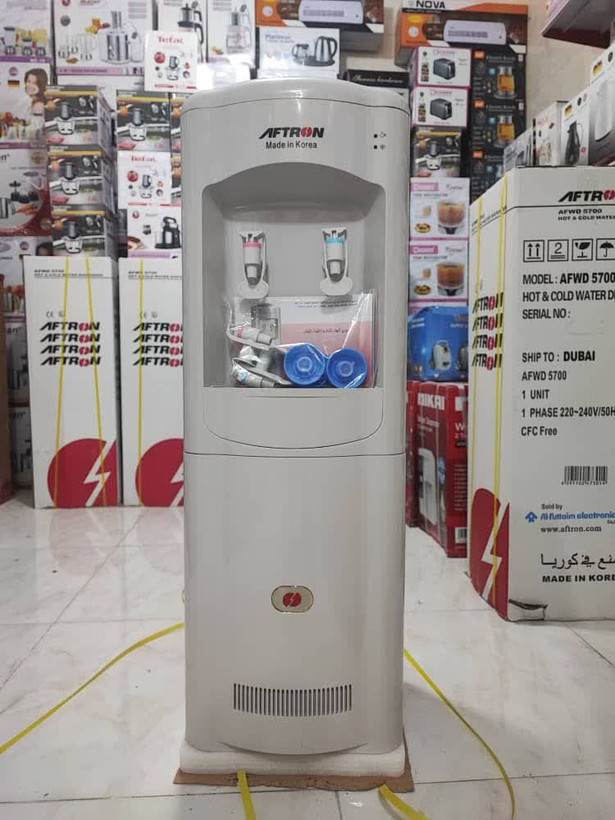 یکی از دستگاههای آبسردکن معتبر و با اصالت بازار که نسبت به قیمت خود از درجه کیفیت بسیار بالایی برخوردار است . کمپرسور قدرتمند و با دوام LG در این دستگاه کار خود را به خوبی انجام داده و در زمان کوتاهی آب سرد را در اختیار شما قرار می دهد . از ویژگی های دستگاه آبسردکن افترون AFTRON اینکه میتواند در زمان کوتاهی درجه آب را پایین اورده و آب سرد زیادی تولید نماید که بسیار مناسب برای مکانهای شلوغ و پر رفت و آمد میباشد . استفاده از این دستگاه برای خانواده های پر جمعیت و همچنین مکان های پر رفت و آمد همچون مغازه ، دفاتر شرکتها ، درمانگاه ها ، بانک ها و ... توصیه میشود و همچنین پیشنهاد ما به افرادیست که قصد خرید یک دستگاه بادوام و با اصالت را دارند .نحوه اتصال دستگاه آبسردکن افترون AFTRON به آب ، توسط مخزن میباشد که شما میتوانید از مخازن ساده و یا فیلتر دار و شناوردار استفاده نمایید و همچنین نیز میتوانید با استفاده از مخازن شناور دار آنرا مستقیما به آب شهری یا دستگاه تصفیه آب متصل نمایید و در این حالت پر شدن مخزن به صورت خودکار انجام می شود . در این رده قیمتی بسیار ارزش خرید دارد و یکی از بهترین انتخابها در این رده قیمتی میباشد و دستگاهی است که بعد از خرید آن ، خیال خود را از بابت کیفیت آن راحت کرده اید .