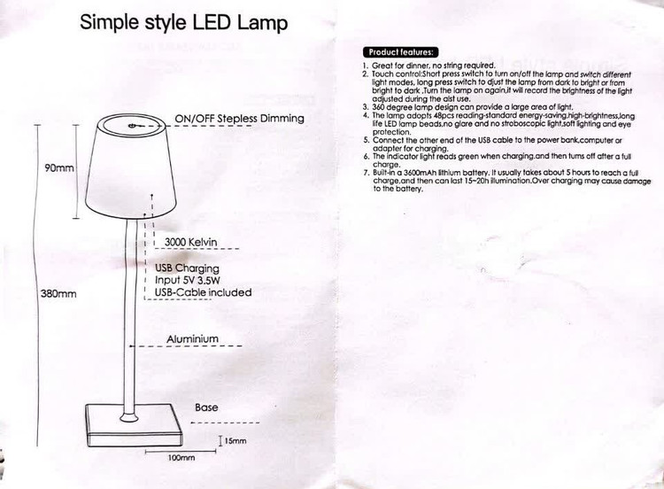 آباژور رومیزی شارژی بدون سیم