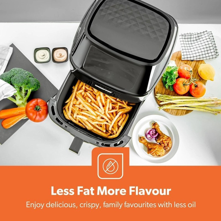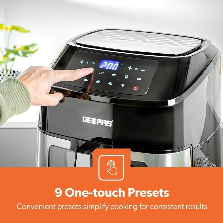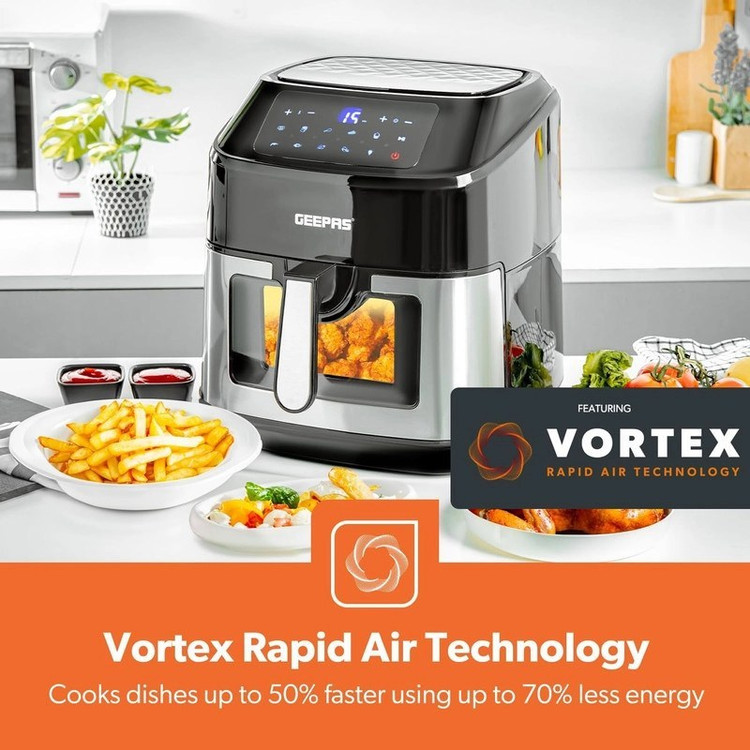 سایر توضیحات: دارای فناوری گردش هوای سریع Vortex برای پخت سریعتر و سالمتر / کاهش مصرف روغن تا نود و نه درصد با نتایج ترد و آبدار / سرخ کن دیجیتال با صفحه لمسی LED و ۹ برنامه پخت از پیش تنظیمشده / قابلیت تنظیم دما از ۵۰ تا ۲۰۰ درجه سانتیگراد و تایمر شصت دقیقهای / ظرفیت ۹.۲ لیتر مناسب برای خانوادهها با سبد و سینی قابل جداسازی و پوشش نچسب / قابل شستشو در ماشین ظرفشویی برای نظافت آسان / طراحی بهینه برای کاهش مصرف انرژی تا پنجاه و پنج درصد